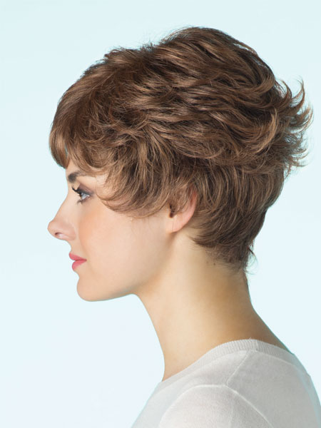 Alyssa Wig by Amore is a naturally feathered style short pixie. It has a graduated back that can be worn flipped for added texture and styling versatility.