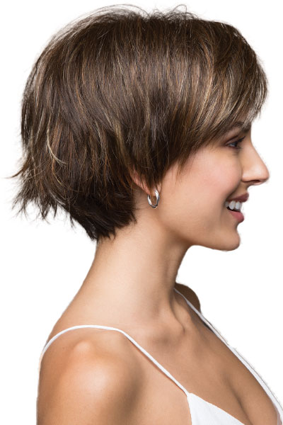 Morgan is a short, fun and flippy wig. It has a long fringe that can be worn forwards and across the brow or swept to the side. Short and spunky with layers that flip in the back, Morgan Wig has ample fullness and volume. You can wear it tousled and modern or smooth and sleek.