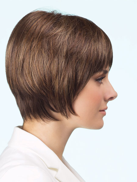 It’s short, it’s chic and it’s a modern cut. The tapered layers and volume at the crown give you full coverage but the look is a sleek and smooth silhouette. Natasha is ready to wear out of the package but can be styled by your wig expert to suit your look. The 9cm fringe can be worn off to the side or forward.